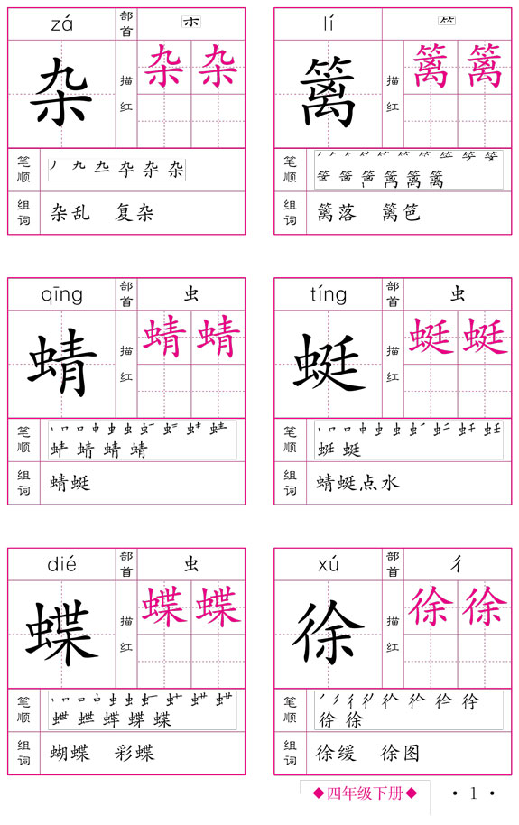 小学生生字卡片(四年级下册)(人教版)