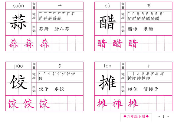 小学生生字卡片(六年级下册)(人教版)