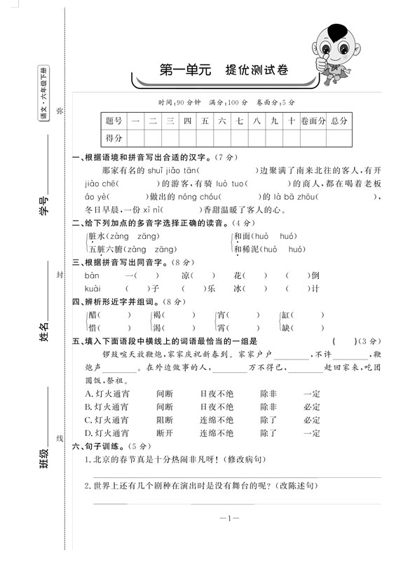 2.单元提优测试卷:注重对单元知识的整合和灵活运用能力的检测,培养学生综合运用知识灵活解决实际问题的能力。